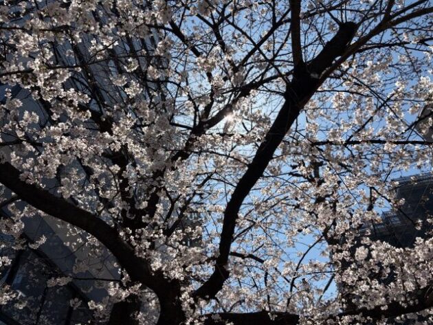 近くの桜で我慢よ・・